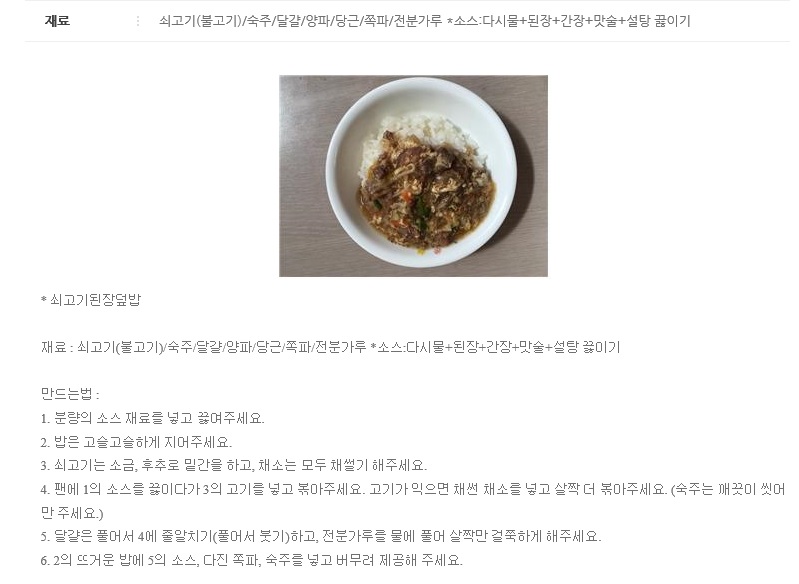 [레시피] 쇠고기된장덮밥 페이지 정보 작성자 관리자 댓글 0건 조회 1,256회 작성일 16-07-04 16:48 목록 본문 이전글 [레시피] 닭고기치즈죽 16.07.04 다음글6월 안산별빛 포토랜드 빛축제 16.06.01 댓글 0 댓글목록 등록된 댓글이 없습니다.