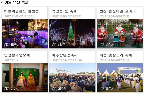 11월 경기도축제2 페이지 정보 작성자 관리자 댓글 0건 조회 1,164회 작성일 17-11-14 17:16 목록 본문 이전글12월 경기도축제 17.12.05 다음글11월 경기도축제1 17.11.14 댓글 0 댓글목록 등록된 댓글이 없습니다.