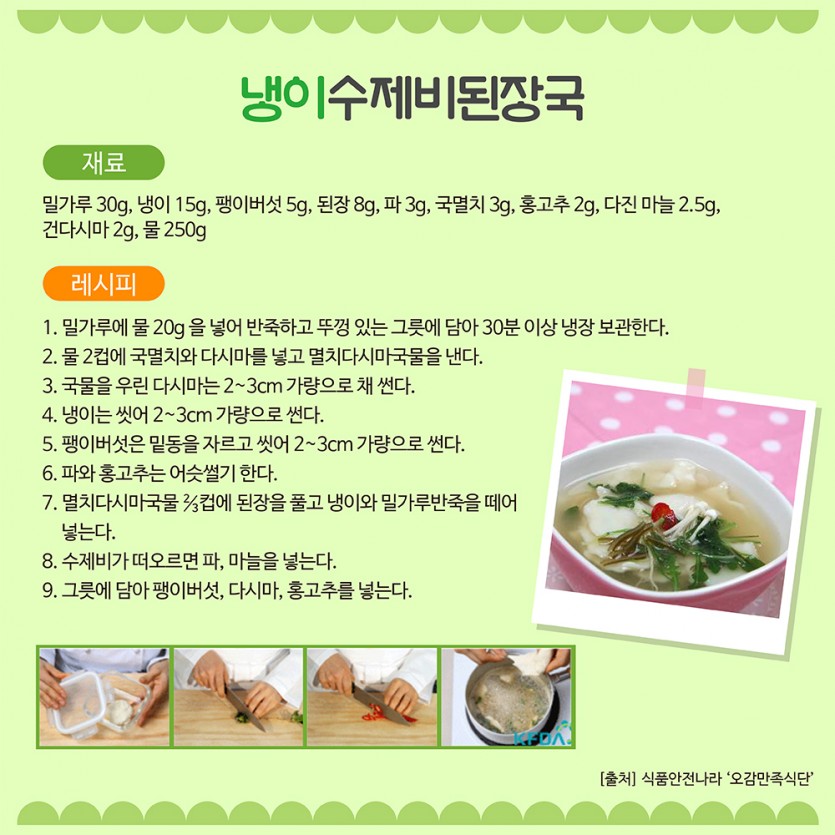 [레시피]냉이 수제비 된장국 페이지 정보 작성자 관리자 댓글 0건 조회 1,259회 작성일 20-02-14 16:31 목록 본문 출처: 식품안전나라 이전글[레시피]달래 두부김치무침 20.02.14 다음글[체험] 수도권 유아환경교육관 접수 안내 20.02.14 댓글 0 댓글목록 등록된 댓글이 없습니다.