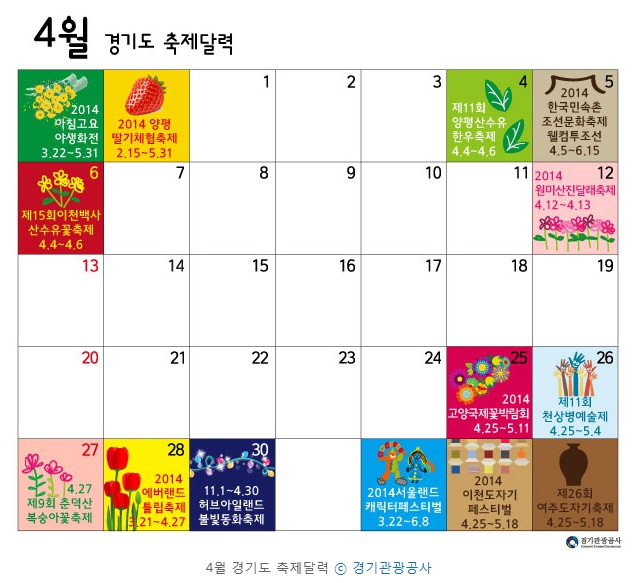 2014년 4월 경기도축제달력 페이지 정보 작성자 관리자 댓글 0건 조회 1,500회 작성일 14-04-01 17:43 목록 본문 이전글2014년 경기도 축제달력 홈페이지 14.04.01 다음글2014년 4월 나들이 정보 14.03.25 댓글 0 댓글목록 등록된 댓글이 없습니다.