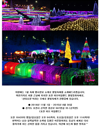 포천허브아일랜드 불빛축제 페이지 정보 작성자 관리자 댓글 0건 조회 1,482회 작성일 15-01-07 16:29 목록 본문 이전글청평얼음꽃축제 15.01.07 다음글자라섬씽씽겨울축제 15.01.07 댓글 0 댓글목록 등록된 댓글이 없습니다.