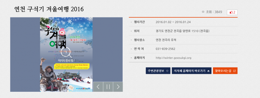 1월 연천 축제 페이지 정보 작성자 관리자 댓글 0건 조회 1,224회 작성일 16-01-04 16:46 목록 본문 이전글2월 청평축제 16.02.01 다음글 1월 양평 축제 16.01.04 댓글 0 댓글목록 등록된 댓글이 없습니다.