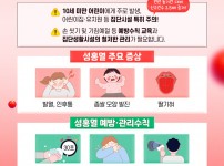 전년 동기간 대비 신고건수가 2.5배 증가!10세 미만 어린이에게 주로 발생하며, 어린이집·유치원 등 집단시설은 특히 주의해 주세요!손 씻기 및 기침예절 등 예방수칙 교육과 집단생활시설의 철저한 관리가 필요합니다.■ 성홍열 주요 증상· 발열, 인후통.· 좁쌀 모양 발진.· 딸 . . .