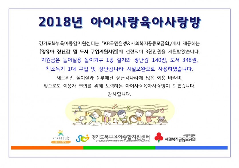 앞으로도 이용자 편의를 위해 노력하는 아이사랑육아사랑방이 되겠습니다.