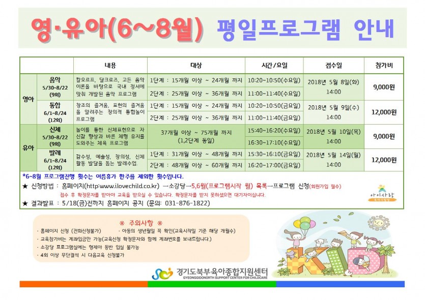 6월~ 8월 평일프로그램 안내 페이지 정보 작성자 관리자 댓글 0건 조회 5,768회 작성일 18-05-03 11:59 목록 본문 *자세한 사항은 첨부파일을 확인해주세요. 이전글[아이사랑상담실] 부모집단상담 접수안내 18.05.03 다음글2018년 5월 이동식 도서관 일정표 18.05.02 댓글 0 댓글목록 등록된 댓글이 없습니다.