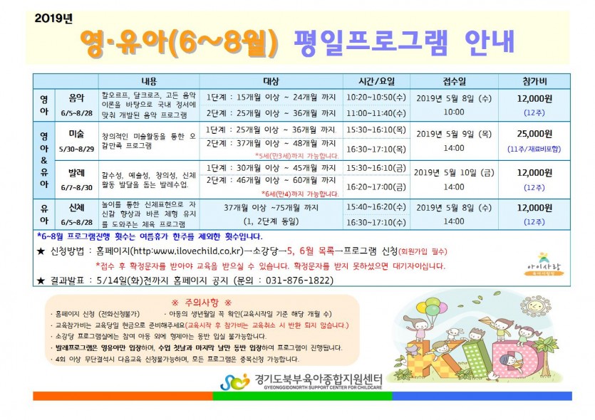 영유아(6~8월) 평일프로그램 모집안내 페이지 정보 작성자 관리자 댓글 0건 조회 5,500회 작성일 19-04-24 14:48 목록 본문 *자세한 사항은 첨부파일을 확인해주세요. 이전글육아사랑방 놀이터로 모여라~ 19.04.24 다음글2019년 5월 이동식 도서관 일정표 19.04.22 댓글 0 댓글목록 등록된 댓글이 없습니다.