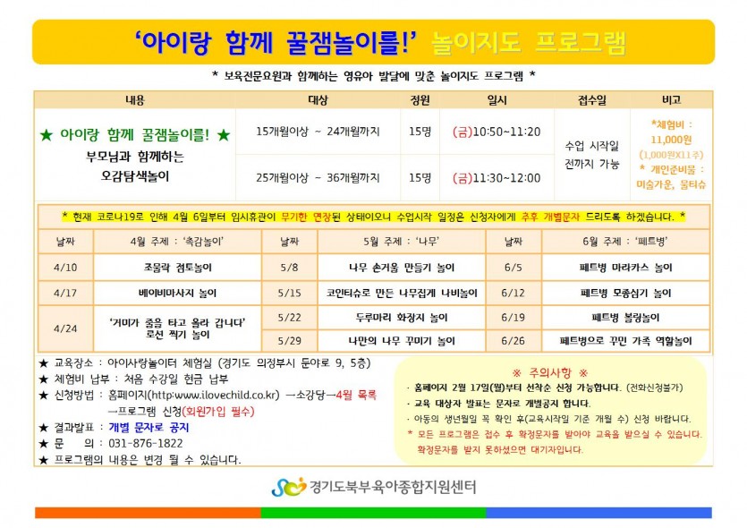 **기타 문의사항이 있으시면 아이사랑 놀이터 (031-876-1822)로 해주세요.