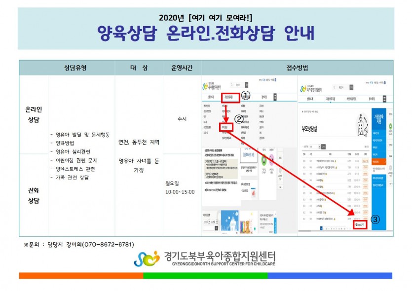 2020년 [여기여기 모여라] 양육상담 온라인, 전화상담 안내