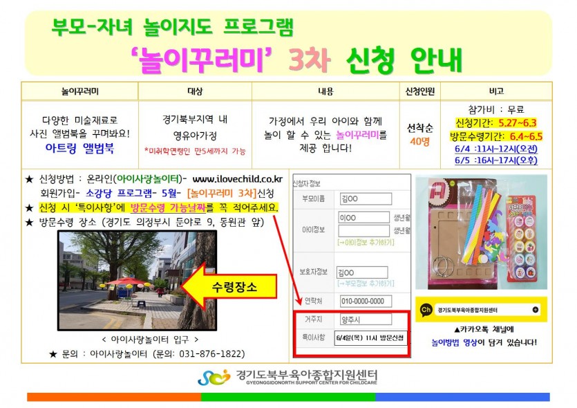 * 놀이꾸러미 수령방법 :