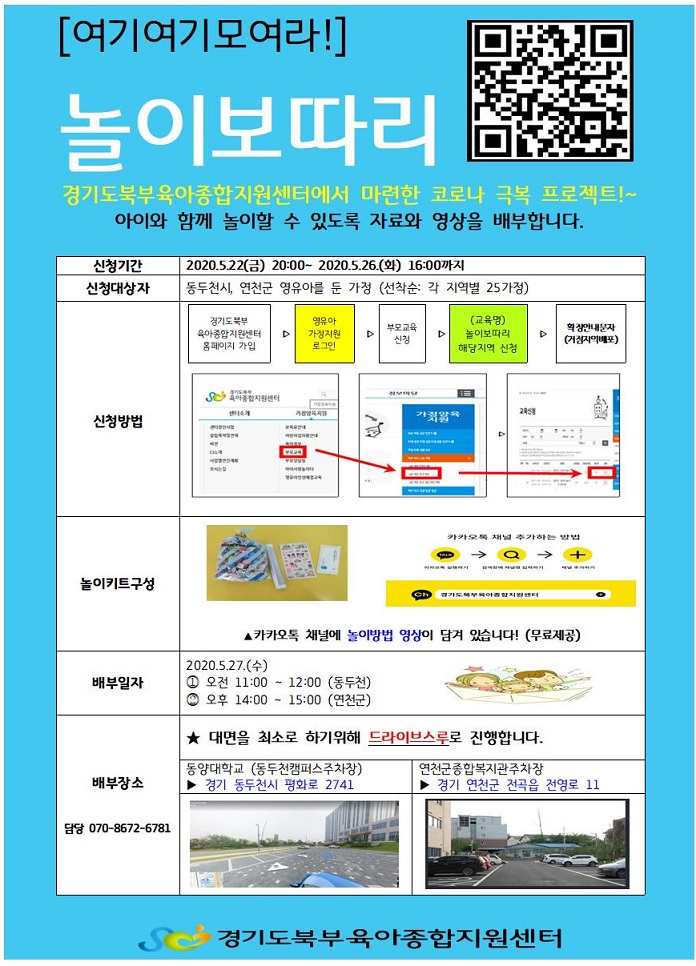 코로나 극복 프로젝트 놀이보따리3차에서 놀이키트 와 영상을 배포합니다.