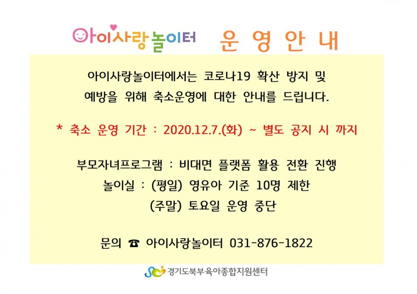 코로나19 감염확산 방지 및 예방을 위해 12월 1일부터 축소운영을 진행하오니