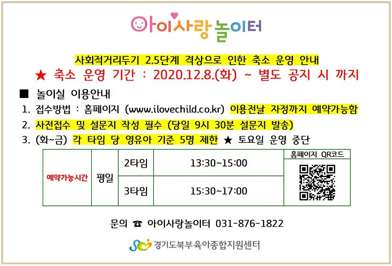 [아이사랑놀이터] 사회적 거리두기 2.5단계 격상에 따른 운영 안내