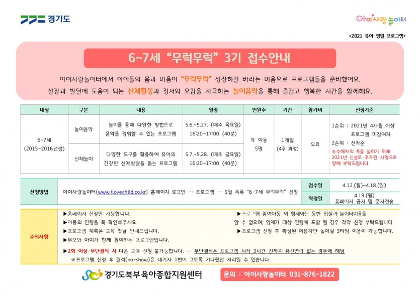 [아이사랑놀이터] 6~7세 무럭무럭 3기 접수안내