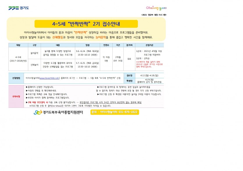 [아이사랑놀이터] 4~5세 반짝반짝 2기 접수안내