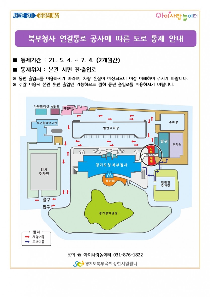 [아이사랑놀이터] 북부청사 연결통로 공사에 따른 도로 통제 안내 페이지 정보 작성자 관리자 댓글 0건 조회 6,056회 작성일 21-05-03 17:26 목록 본문 이전글[아이사랑놀이터] ‘베이비 마사지 & 요가’ 추가모집 안내 21.05.03 다음글[아이사랑놀이터] 커피 "도란도란 4기" 추가모집안내 21.05.03 댓글 0 댓글목록 등록된 댓글이 없습니다.