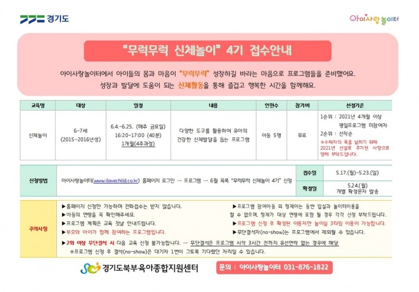 [아이사랑놀이터] "무럭무럭 신체놀이 4기"(6~7세)