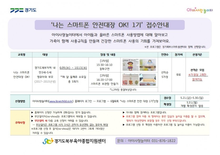 [아이사랑놀이터] "나는 스마트폰 안전대장 1기" 접수안내