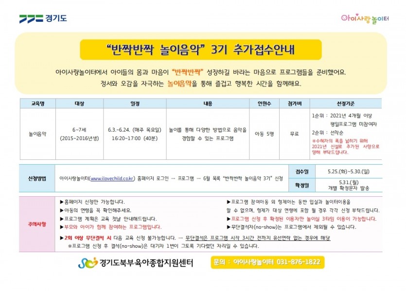 [아이사랑놀이터] "반짝반짝 놀이음악 3기"(6~7세) 추가접수