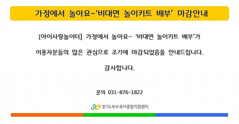 [아이사랑놀이터] 비대면 놀이키트 배부 마감안내 페이지 정보 작성자 관리자 댓글 0건 조회 5,785회 작성일 21-05-29 10:33 목록 본문 문의: 아이사랑놀이터 031-876-1822 이전글[아이사랑놀이터] 집단상담 "부모인 나를 위한 쉼표 하나" 3차, 4차 접수안내 21.06.04 다음글[아이사랑놀이터] 홈페이지 이용관련 안내 21.05.28 댓글 0 댓글목록 등록된 댓글이 없습니다.