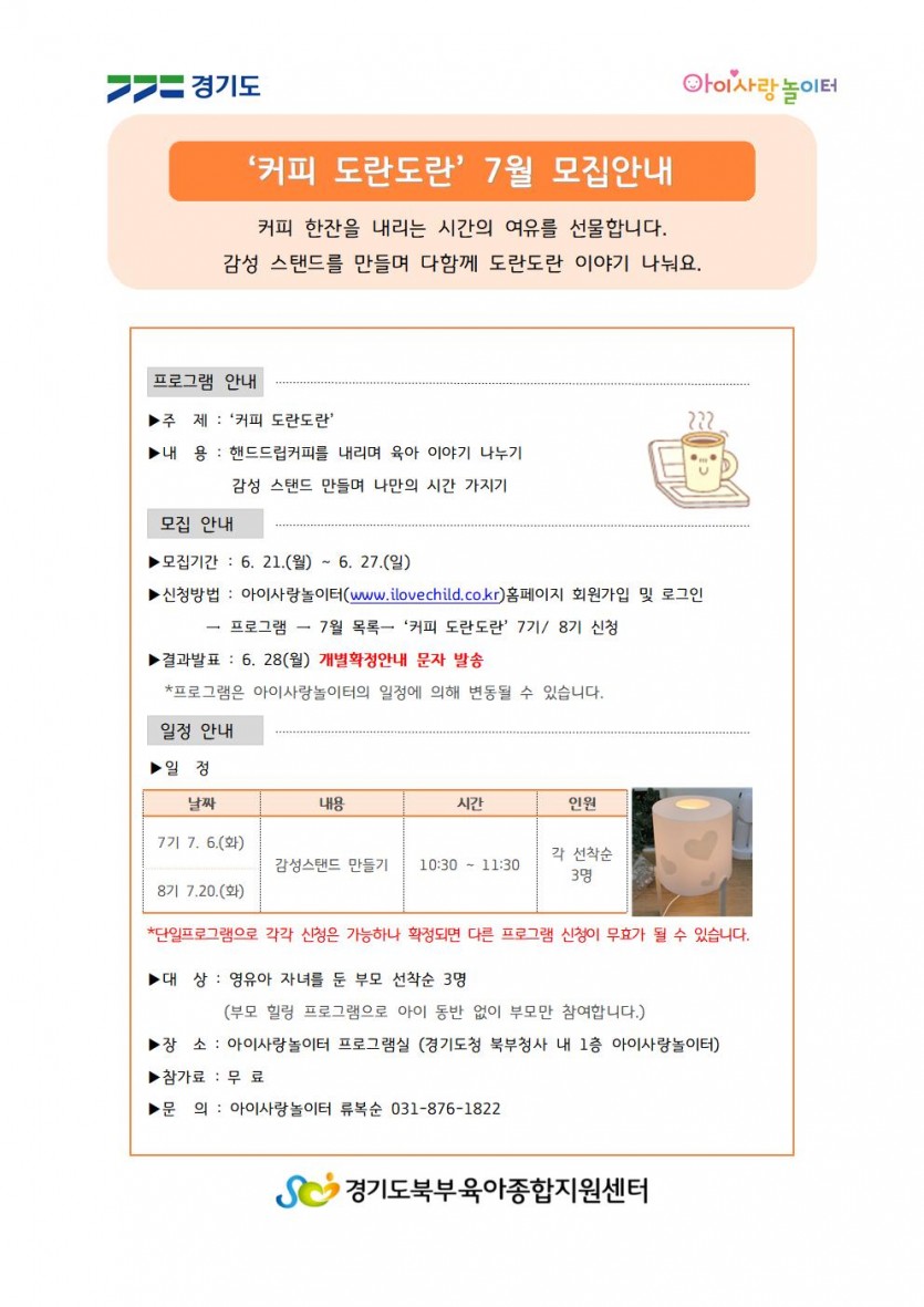 [아이사랑놀이터]"커피도란도란7월모집 페이지 정보 작성자 관리자 댓글 0건 조회 7,127회 작성일 21-06-16 17:56 목록 본문 문의:아이사랑 놀이터 031-876-1822 이전글[아이사랑놀이터] 7월 인형극 모집안내 21.06.26 다음글[경기도시작장애인복지관] 오직 당신만을 위한 테마가 있는 바자회 안내 21.06.11 댓글 0 댓글목록 등록된 댓글이 없습니다.