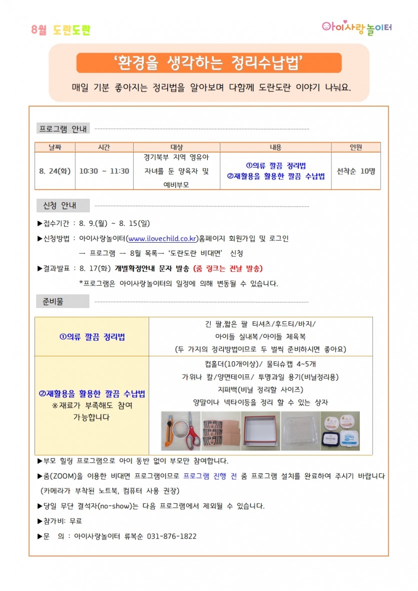 [아이사랑놀이터]도란도란비대면 "환경을 생각하는 정리 수납법"