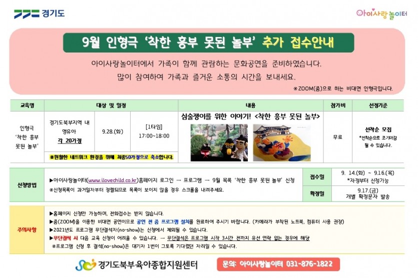 [아이사랑놀이터] 9월 인형극 1타임 추가접수안내