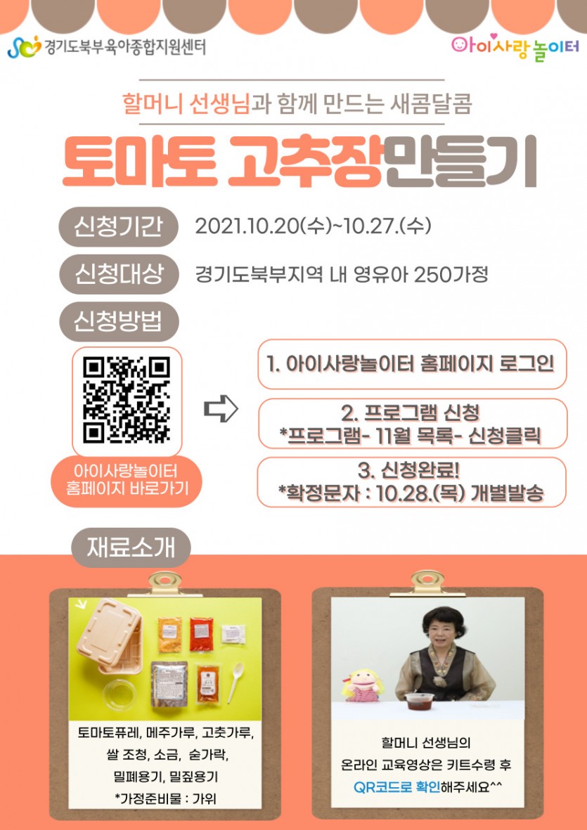 [아이사랑놀이터] "토마토고추장 만들기" 신청안내