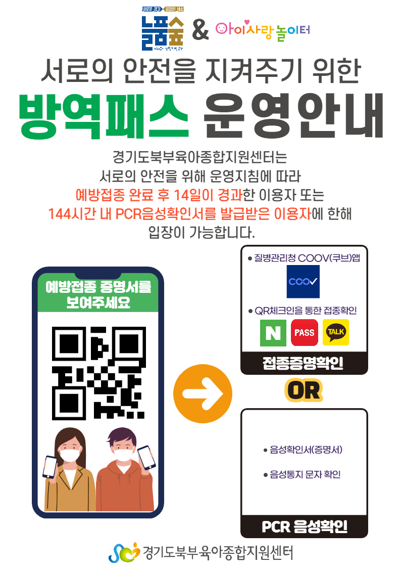 [아이사랑놀이터] 하반기 방역패스 안내 페이지 정보 작성자 관리자 댓글 0건 조회 7,168회 작성일 21-11-08 17:58 목록 본문 자세한 사항은 첨부된 파일을 참고해주세요.문의: 아이사랑놀이터 031-876-1822 이전글[아이사랑놀이터] 11월 인형극 모집안내 21.11.11 다음글[아이사랑놀이터] 세균과 거리두기 신청안내 (유모차 및 책 무료소독) 21.11.05 댓글 0 댓글목록 등록된 댓글이 없습니다.