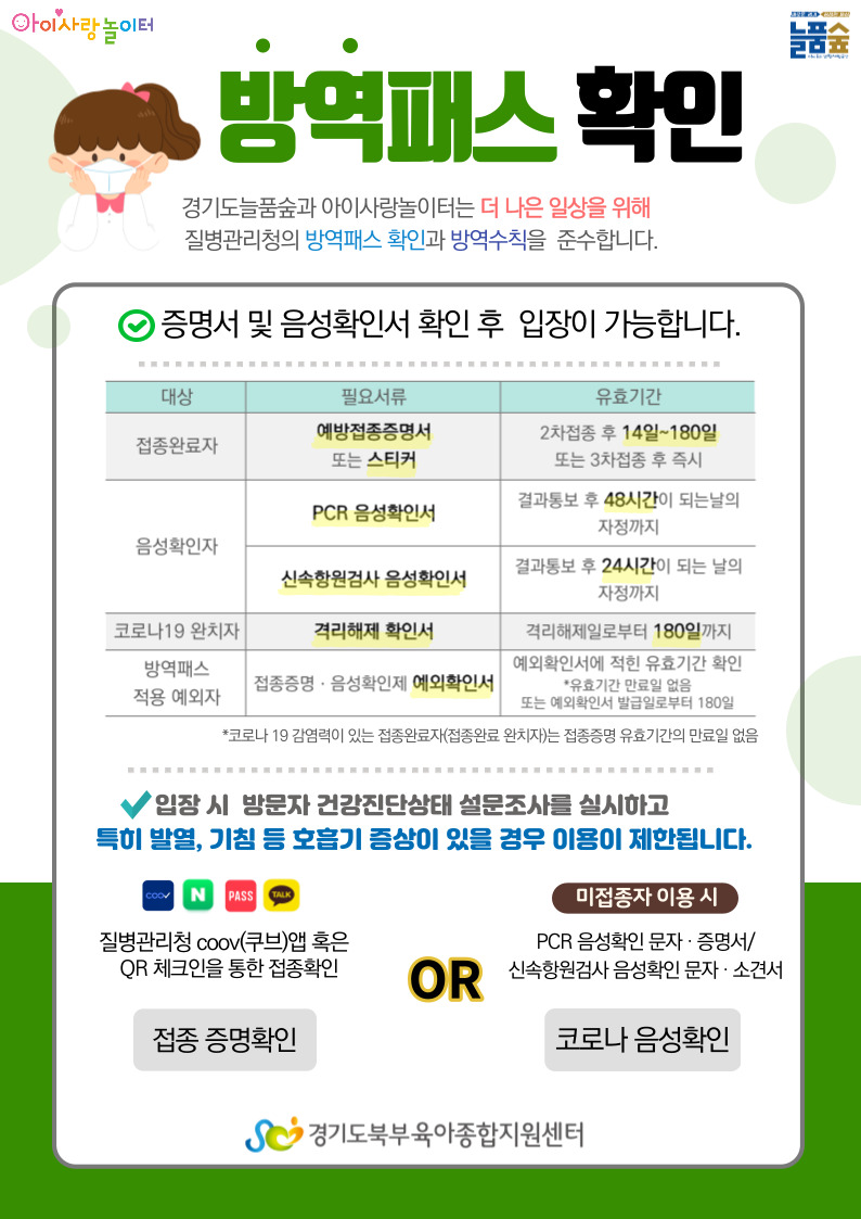 [아이사랑놀이터]방역패스 운영 안내 (신속항원 추가)