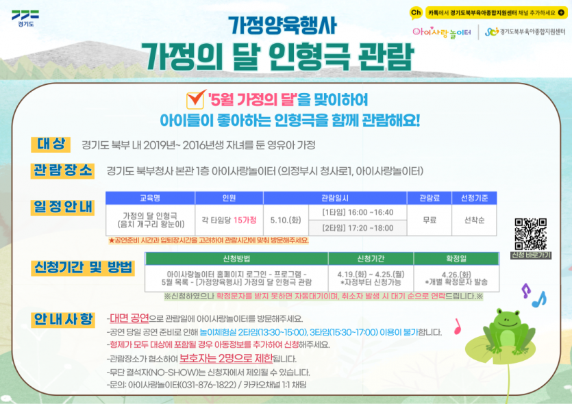 [아이사랑놀이터] 가정의 달 인형극 관람 신청안내