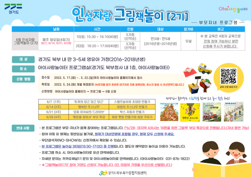 [아이사랑놀이터] 부모-자녀프로그램 '인성자람 그림책놀이 2기' 신청 안내