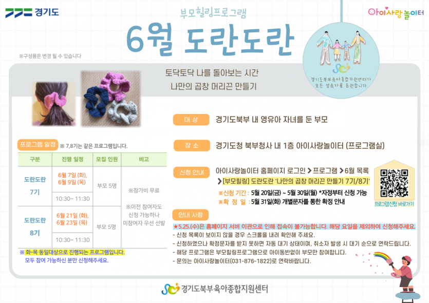 [아이사랑놀이터] 도란도란 7,8기 '나만의 곱창머리끈 만들기' 신청안내