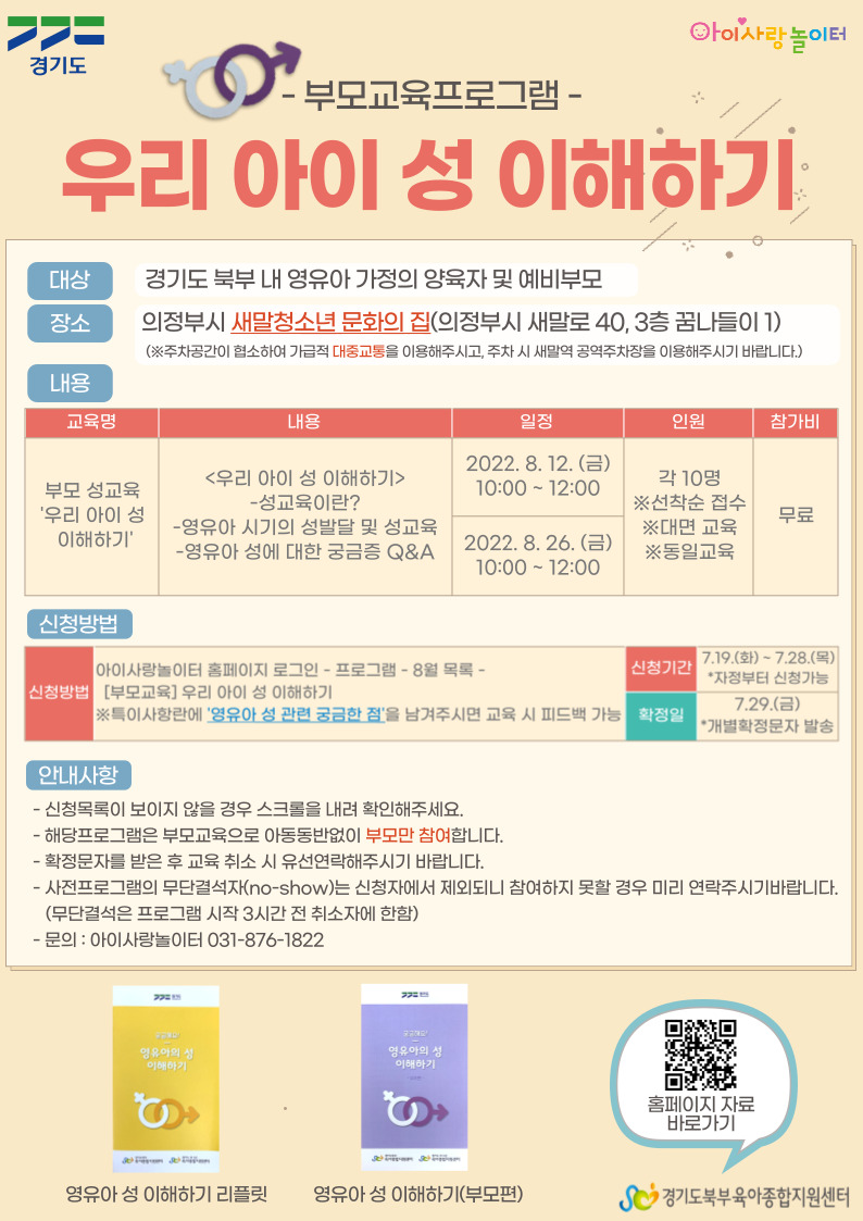 [아이사랑놀이터] 부모교육 '우리 아이 성 이해하기' 신청안내