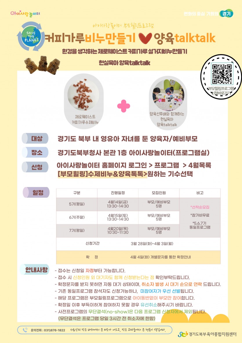 ★내용 : (제로웨이스트)커피가루비누만들기 & 양육talk talk